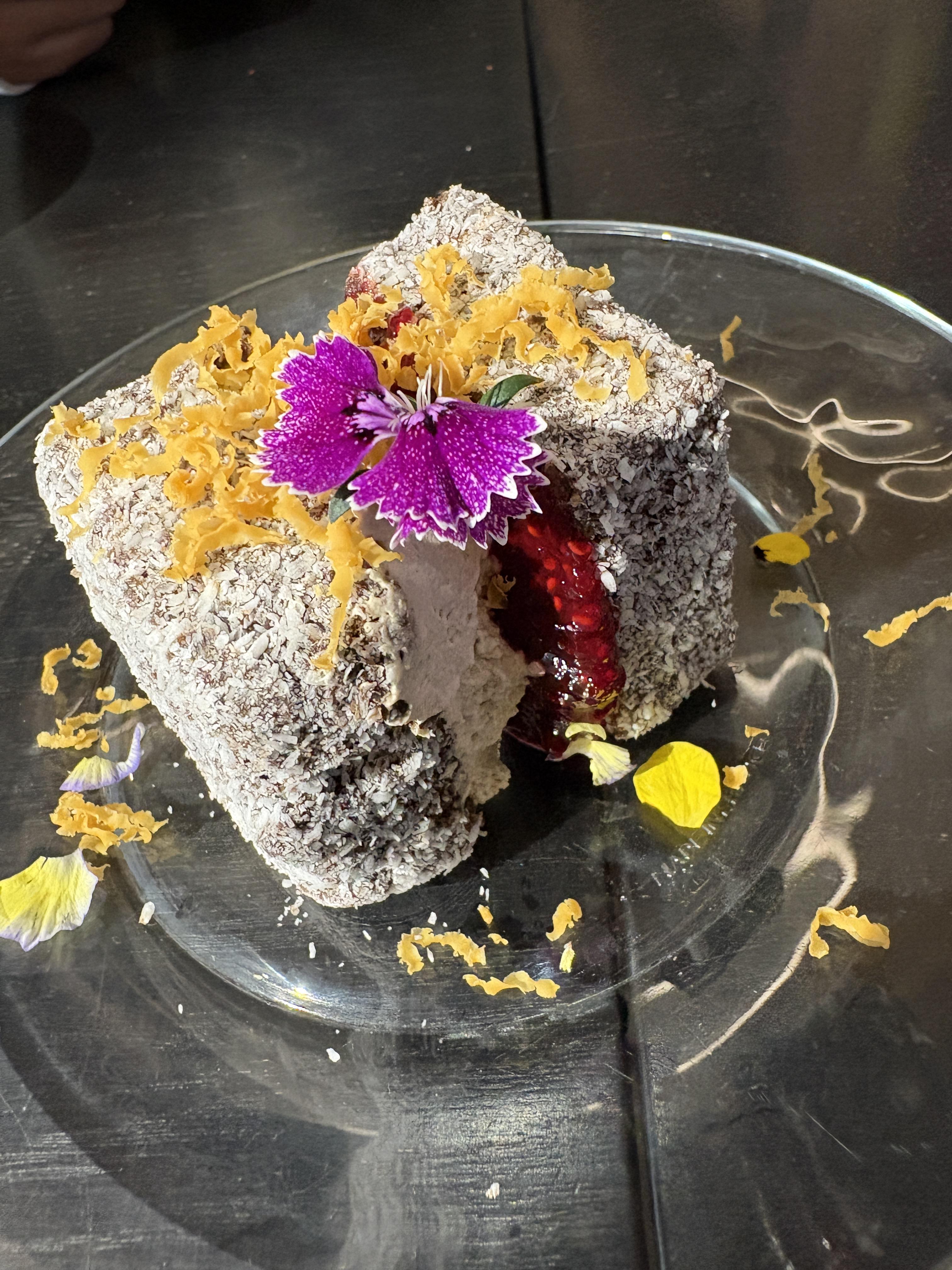 레밍턴 케이크인데 잼이 완전 상큼하고 크림이랑 비율이 잘 어우러졌더라구요.