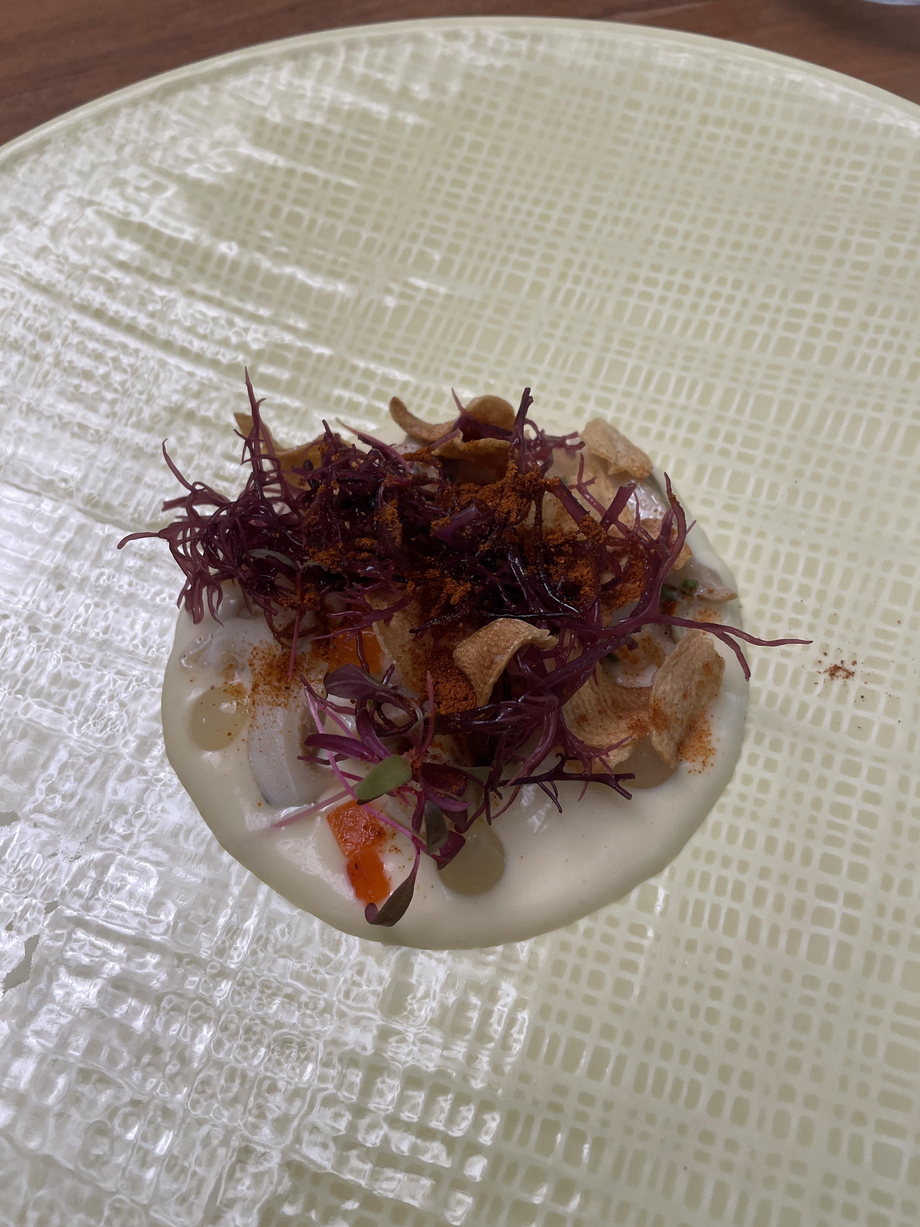 원래는 이렇게 관자, 단호박, 무화과가 들어간 따뜻한 에피타이저가 나온답니다 :-)