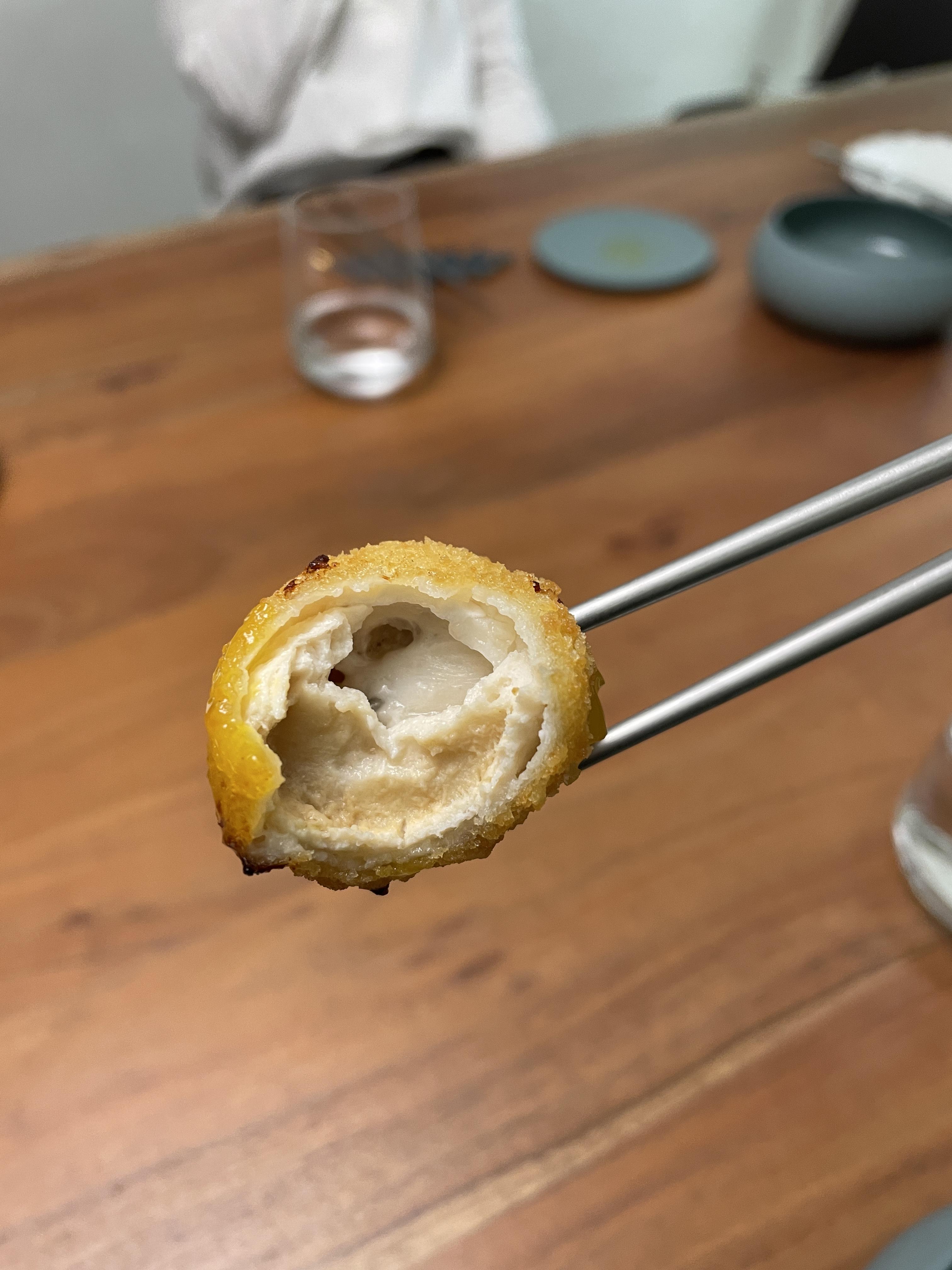 치즈볼(처럼 보이는 상당히 신경 쓴 아뮤즈부쉬) 단면!