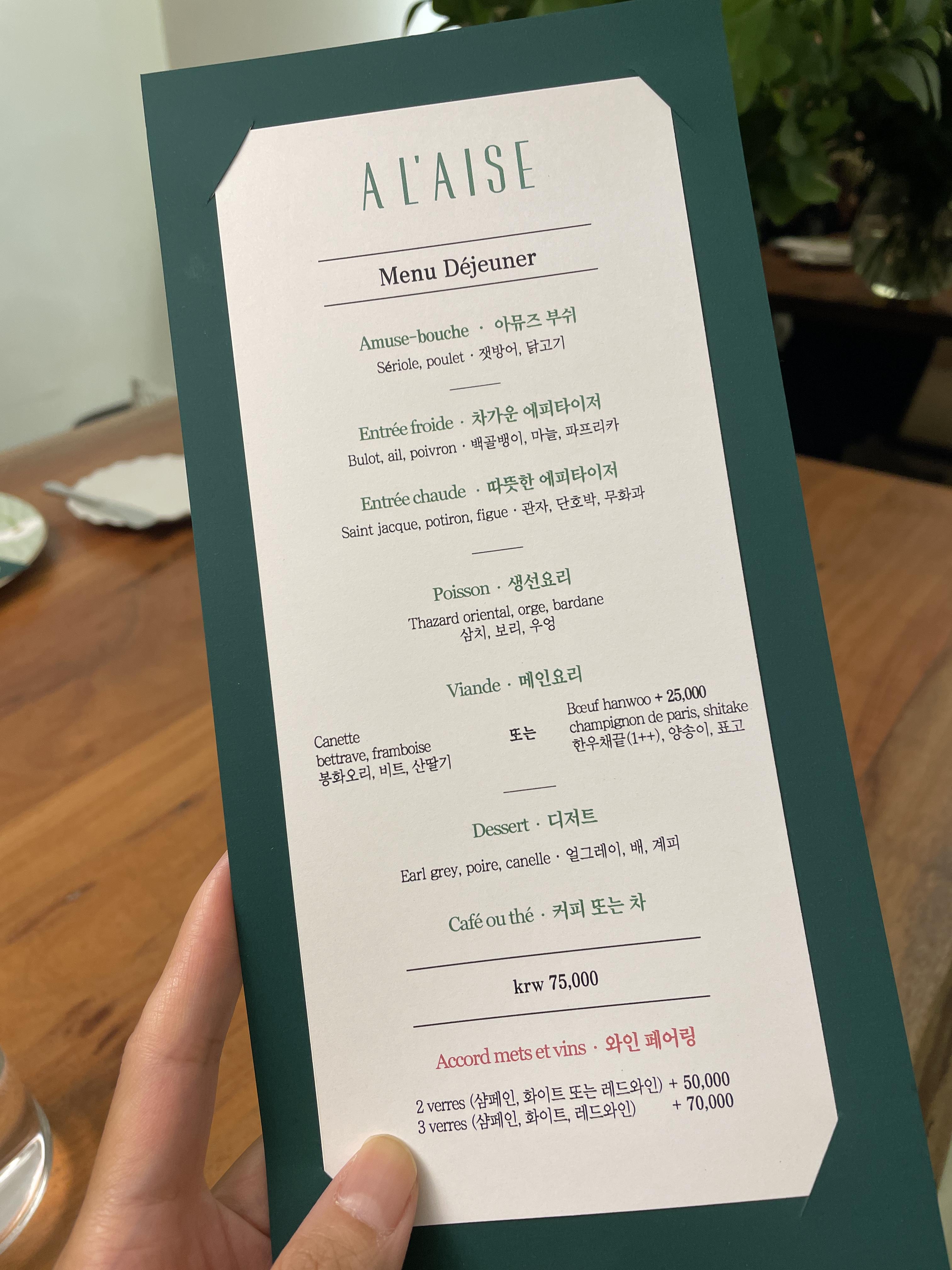 흑백요리사가 열풍(이지만 아직 안 본 1인🥲)이라서 의식의 흐름을 따라 미슐랭이 떠올랐고 그렇게 흘러흘러 한남동 알레즈에 런치 코스 먹으러 갔어요!