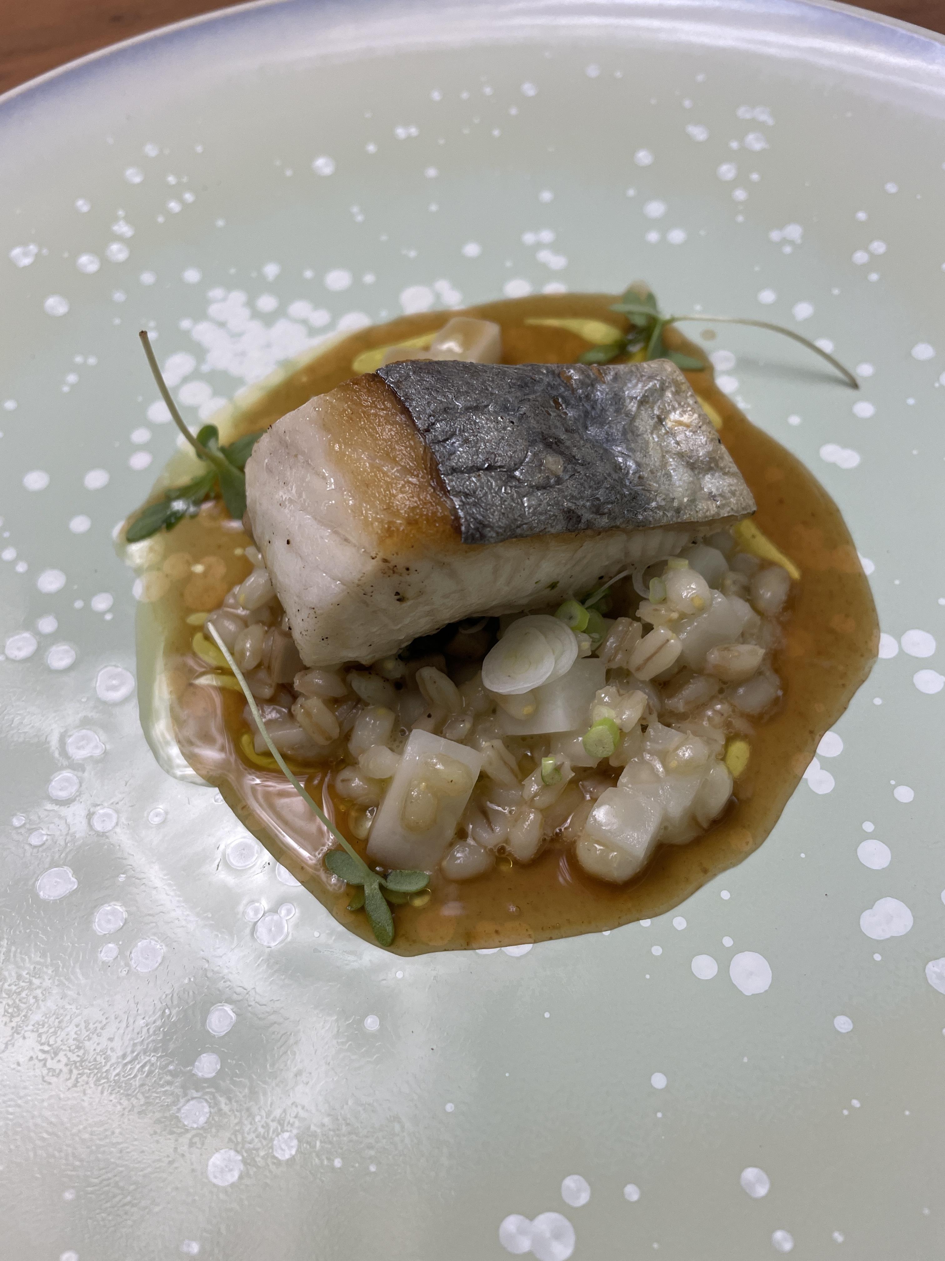 삼치랑 보리 리조또인데 동서양의 맛이 오묘하게 조화를 이뤘네요.