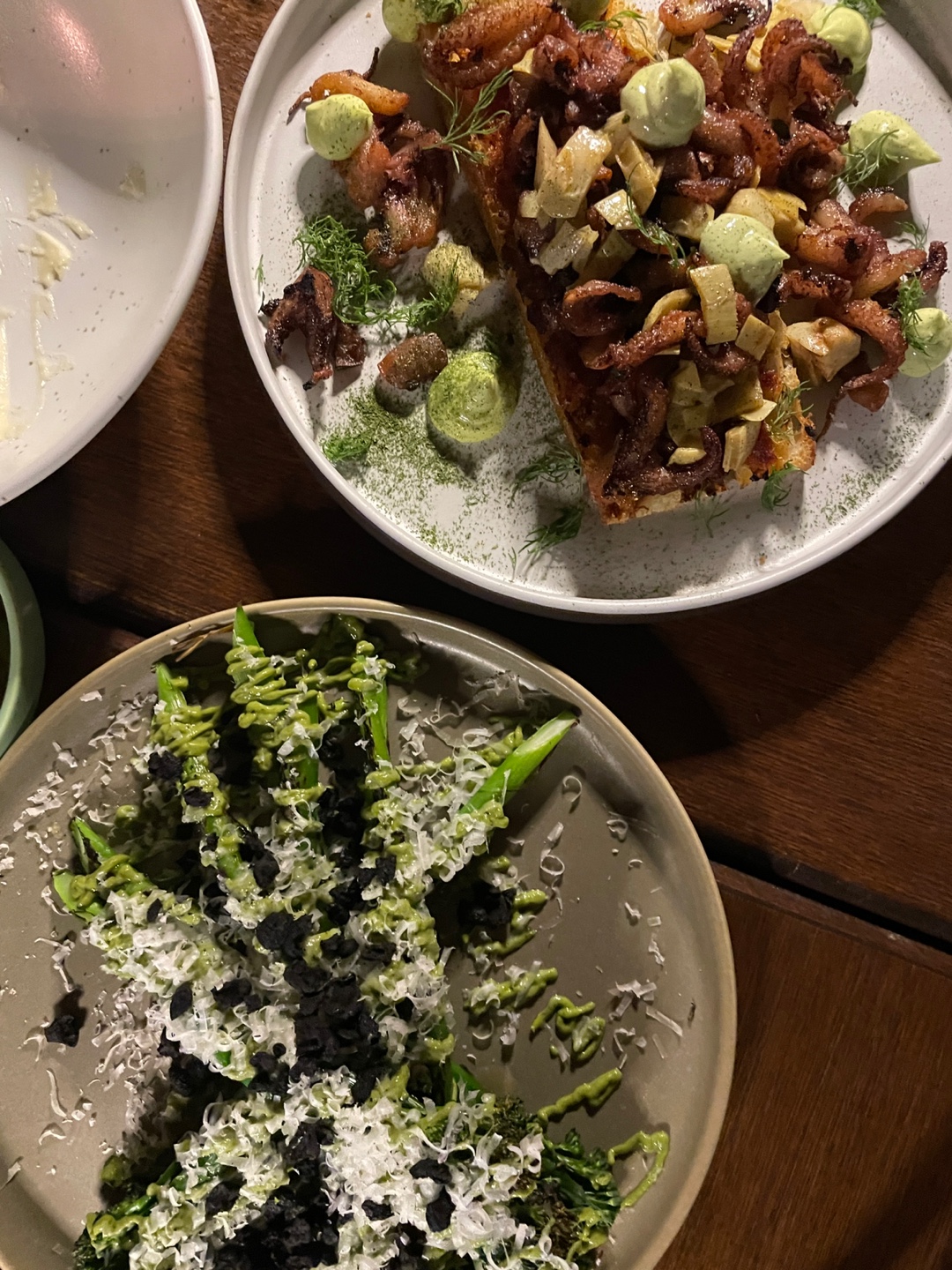 구운 브로콜리니+아보카도 소스+그라나파다노 치즈